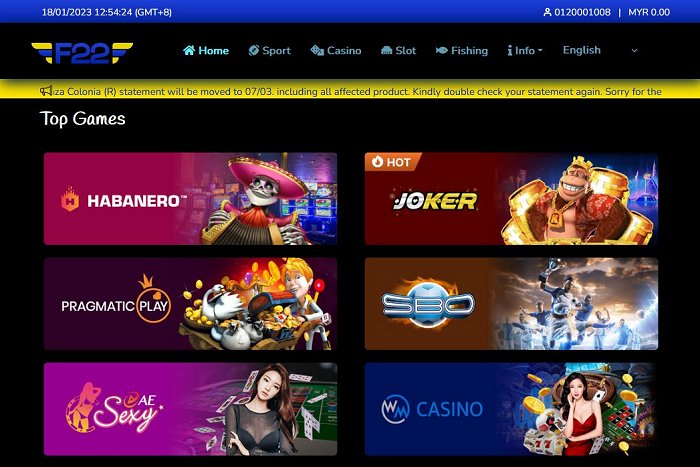 **Free RM5 not allow to go F22 Casino. Please top up your credit to Play.
